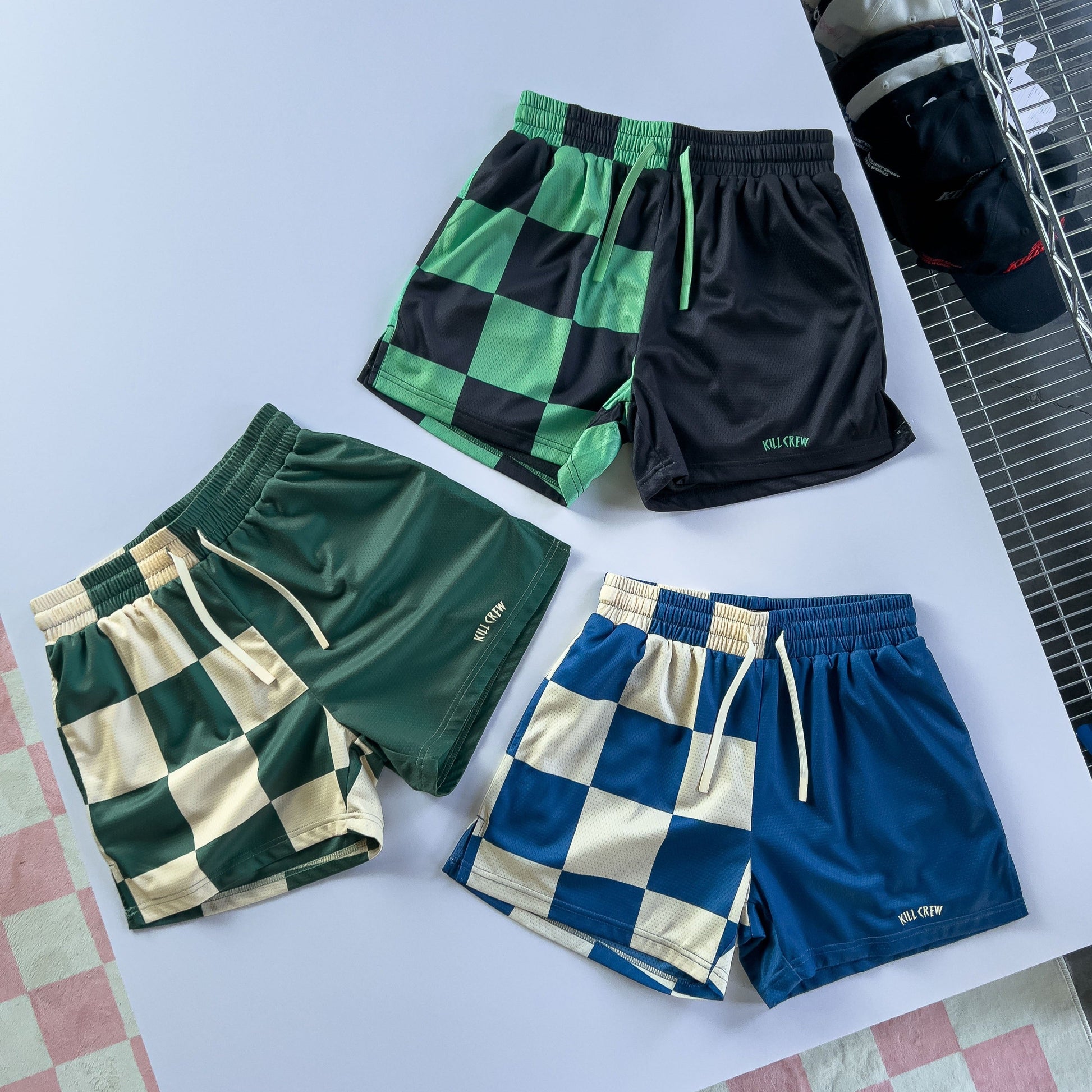 MUAY THAI SHORTS (MID THIGH CUT) CHECKER - BLACK / MINT