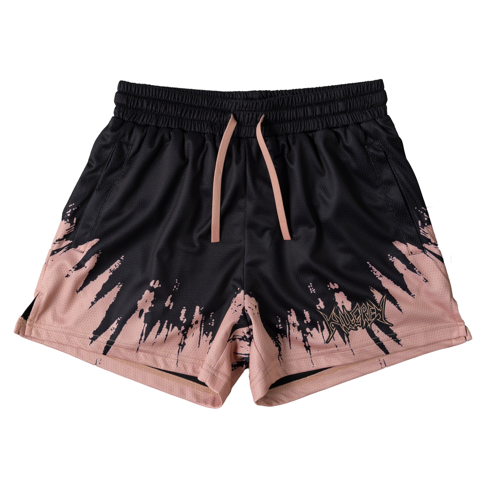 MUAY THAI SHORTS (MID THIGH CUT) SHATTER - BLACK / ROSÉ