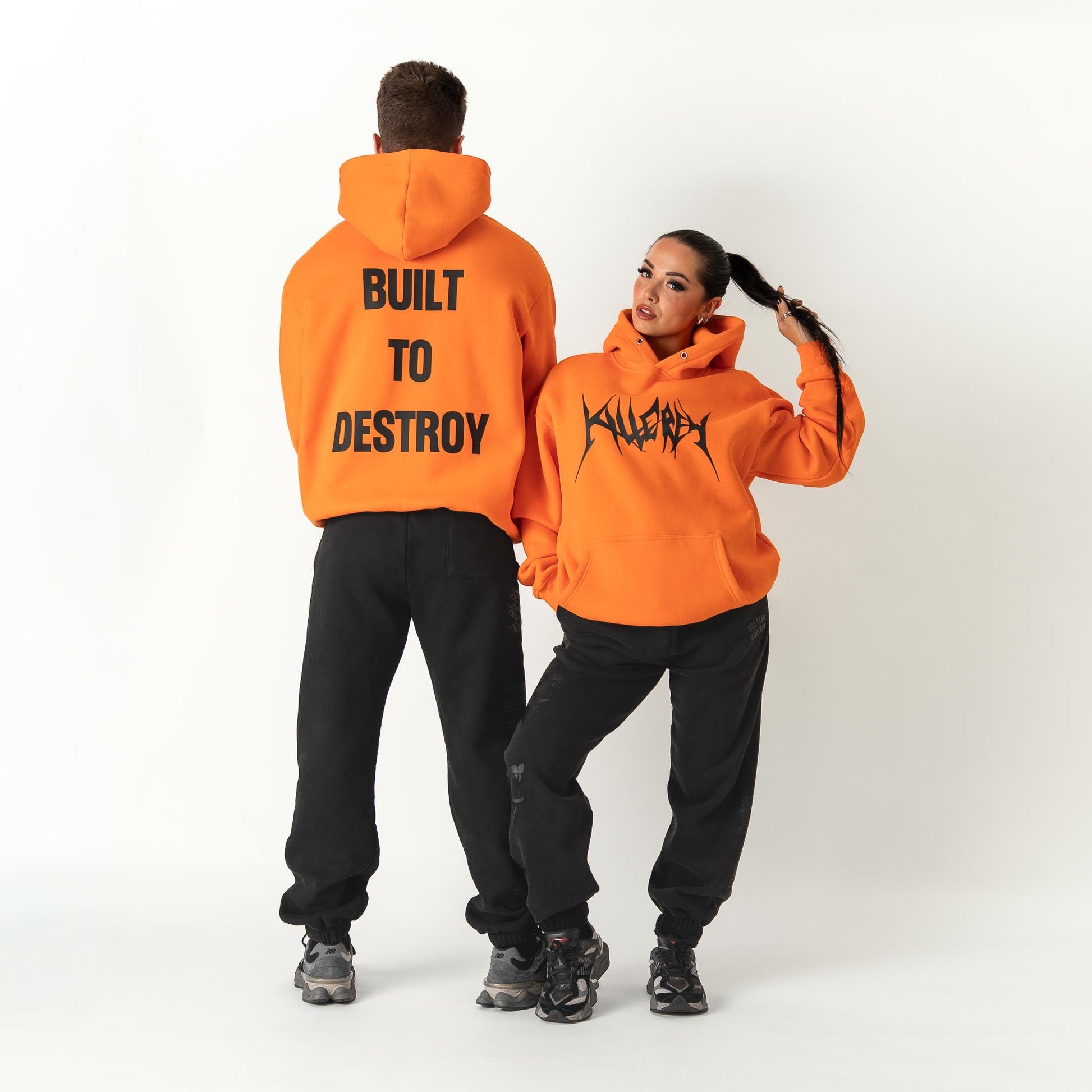 OVERSIZED LUX HOODIE "BUILT TO DESTROY" HOODIE - ORANGE / BLACK