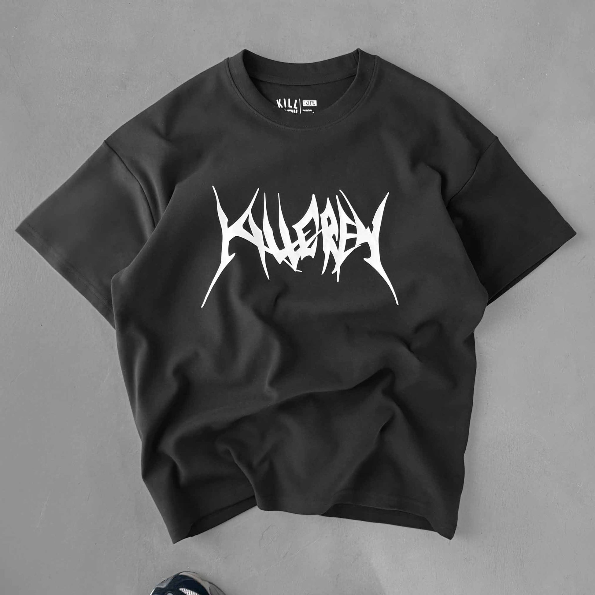 RELAXED FIT NATURAL COTTON "BUILT TO DESTROY" T-SHIRT - BLACK / WHITE